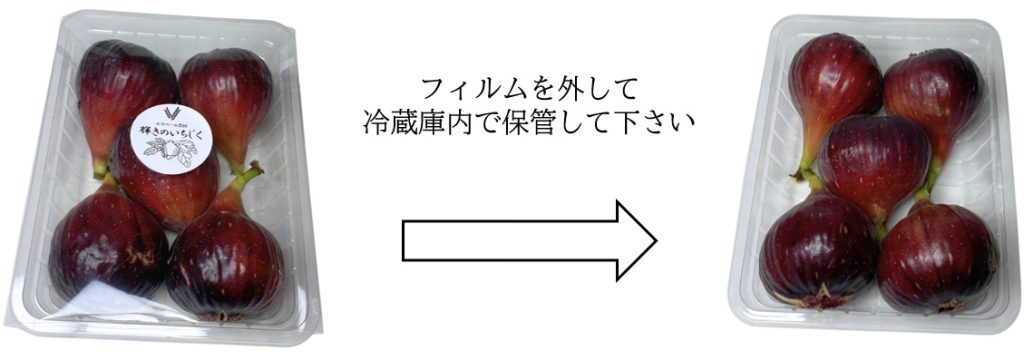 ・フィルムを付けたまま冷蔵庫内で保管すると、結露でいちじくが傷みやすくなります。