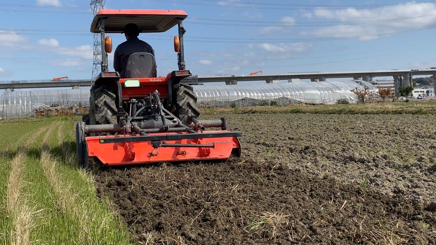 最適な土壌に整える為、当農園では収穫までに4回トラクターで土を起こします。