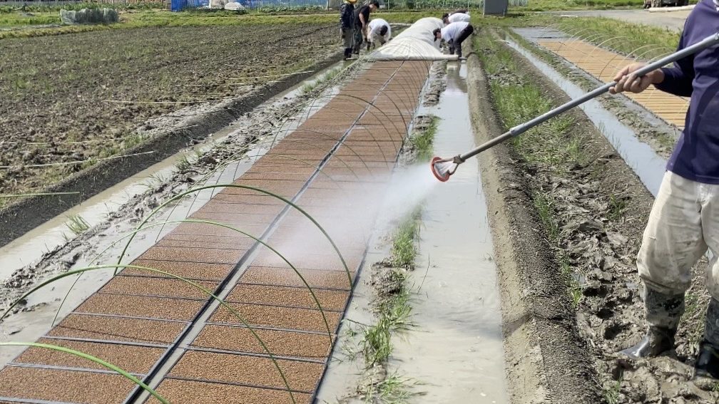 選別した種もみと、最適な土を使用して作った育苗箱を